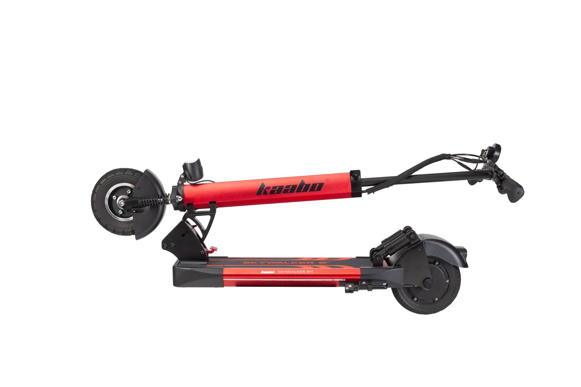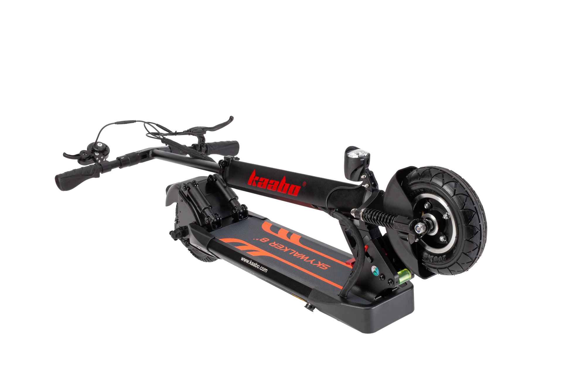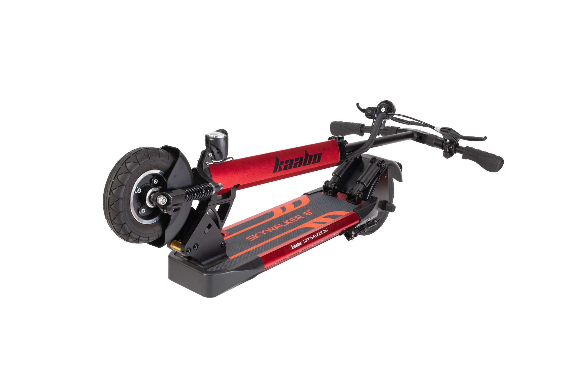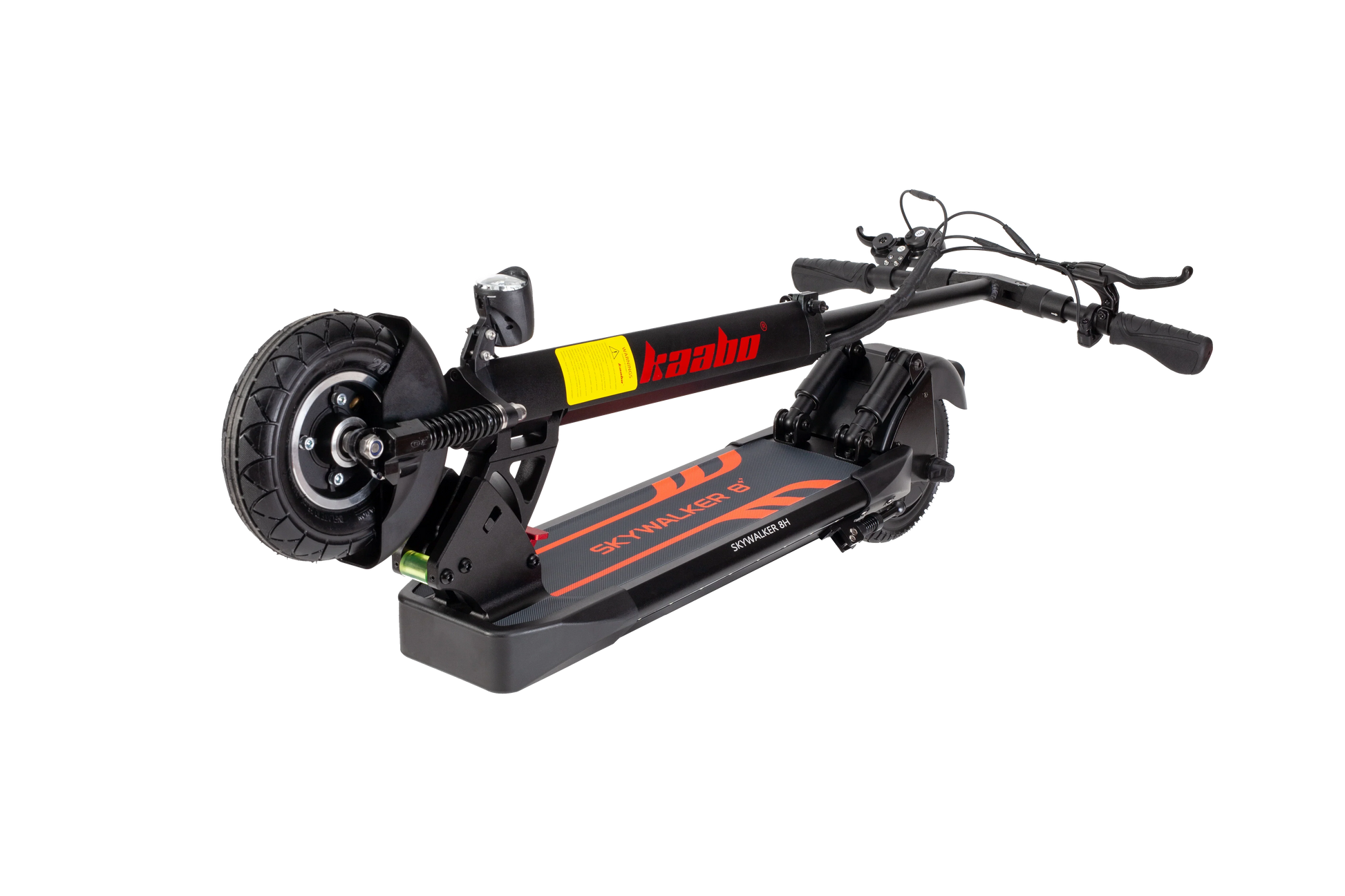 The Kaabo Skywalker 8H is the upgraded version of the legendary Skywalker 8, designed for effortless inner-city commuting, combining everyday practicality with a surprisingly punchy ride. Light and compact, it’s easy to carry up stairs or load into a car, yet still feels confident and responsive on the road. With a low-maintenance solid rear tyre, built-in head and tail lights for everyday riding, and an adjustable handlebar to suit different riders, the Skywalker 8H is a smart, reliable choice for stress-free urban travel.